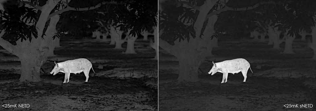 We understand that all this information can be quite confusing at times, which is why, from now on, all Pulsar product specifications will include both the NETD and the sNETD values, allowing for more informed decision making when it comes to buying a thermal imager. The NETD value will always be listed first, as it denotes what the device can achieve without any digital manipulation, and the sNETD will be listed after this, and will be calculated after all available image processing algorithms and image filtration is applied.